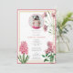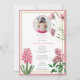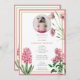Uma bela design que mostra florais botânicos cor-de-água cor-de-rosa com sotaques dourados e sua própria foto de bebê. Um design elegante ideal para o Natal Batismo de uma menina. Papelaria e decoração correspondentes podem ser vistos nesta coleção de designs.