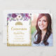 Lavanda roxa Quinceañera convite para uma princesa elegante! Este design moderno apresenta flores de aquarela, borda falsa com brilho dourado e coroa de tiara.