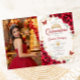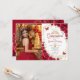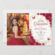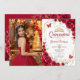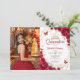 Convite para celebração de Quinceanera vermelha, dourada e branca com fotografia. Recursos, fontes de script, borboletas douradas, rosas de aquarela e tiara. Perfeito para uma elegante celebração de glam estilo princesa. Personalize com seus próprios detalhes. Impressos convites Zazzle ou modelo de impressão digital instantânea para download.