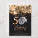 Convite Foto Elegante 50º Aniversário, Dourada Meia-Noite