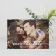 Elegante Rosa Salve O Convite De Data. Moderno e elegante, projetado com um roteiro fluente, uma foto personalizada e uma dica de cor com um pequeno rosa atrás. Personalize este design com seu nome, data do casamento e qualquer outra mensagem personalizada que você gostaria de incluir! A cor de fundo está definida como branca, mas você pode escolher uma cor de preenchimento de sua escolha.