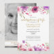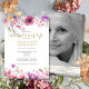 Elegante convite de celebração da vida personalizado com floral em aquarela e foto em preto e branco. Concebido por Thisisnotme©
