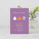 Convites de foto para o Halloween, por red_dress, com tema de Halloween, com fantasma de desenho animado, abóbora de Halloween e desenhos de caveiras fofas, em fundo roxo e um modelo de foto (verso).