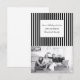 Trendy and na moda Vertical Festic Stripes Holiday Cartão com fotos com um padrão simples de distribuição de fundo em preto e branco. Este simples e moderno convite ao cartão com fotos pode ser facilmente personalizado com a sua própria foto de família e com a saudação personalizada de Natal. Localize mais opções de personalização clicando em Personalizar. Fotografia © Storytree Studios, Stanford, CA