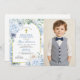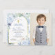 Convite Fotográfico Floral Azul de Primeira Comunhão Dusty