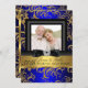 Convite de Aniversário Azul e Dourado. Elegante arco de jóia preta e design floral com brilho dourado. Eles NÃO têm Jóias ou Arcos reais!