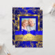 Convite de Aniversário Diamante Dourado e Azul. Elegante arco de jóia azul e design floral com brilho dourado. Eles NÃO têm Jóias ou Arcos reais!