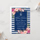 Convite Foto Floral Cor-de-rosa com Stripes Azuis Náuticas