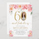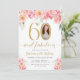 Convite Foto Floral rosa e Dourada 60º Aniversário