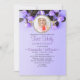 Convite elegante moderno para a primeira comemoração da sua filha. O convite é tão bonito com um Floral roxo com design de rosa com fundo de aquarela. Além disso, fizemos o convite com personalização extra com a foto da sua filha para fazer com que ela pareça mais única e especial. Basta tirar uma foto com o telefone e adicioná-la à estrutura moderna do miçanga.