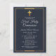 Convite Foto Marinho Azul Dourado Primeira Comunhão Santa