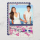 Marinho azul Azulejo marroquino borda sua foto cor-de-rosa-vivo e Marinhos amam aves sentadas em um galho de flores de cereja exibido no champanhe metálico