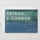 Elementos: fundo de lavagem com aquarela de abstrato. Nomes e detalhes aparecem nas fontes sans sans sif modernas. A parte traseira apresenta foto e código QR RSVP. Cores: azul, verde, esmeralda, oceano, verde-mar, marinho, azul real, azure. Temas: tons modernos, minimalistas, contemporâneos, joias. Coleção: Coleção Moderna de Casamentos de Teal Azul Minimalista. Tipo de produto: Convites de casamento
