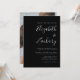 Este simples convite de casamento moderno apresenta um texto branco sobre um fundo preto. Adicione os nomes da noiva e do noivo na caligrafia de escrita manual do na moda e os detalhes na fonte sans serif. Substitua facilmente a imagem de exemplo no verso por sua própria foto.