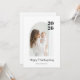 Celebre o Dia de Ação de Graças de 2026 com estilo atemporal com este cartão de foto de arco moderno. Com tipografia ousada do ano, layout minimalista limpo e espaço para sua foto favorita da família, este design é perfeito para enviar votos calorosos durante a temporada de férias. Personalize com o nome da sua família e foto para criar um cartão de lembrança do Dia de Ação de Graças único que amigos e entes queridos irão apreciar.