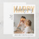 Envie seus melhores votos nesta temporada de feriados com um cartão de foto moderno de Feliz Dia de Ação de Graças. Com tipografia em negrito combinada com uma escrita à mão, este design é elegante e sincero. Adicione sua foto favorita da família e personalize com sua própria mensagem para criar um souvenir único que os entes queridos irão guardar. Perfeito para compartilhar gratidão e alegria neste Dia de Ação de Graças.