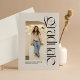 Moderno e elegante, este anúncio de formatura de duas fotos é perfeito para o graduado ousado e moderno. Com uma foto arqueada única na frente com tipo moderno e ousado, este design também tem espaço no verso para uma segunda foto e o texto do convite da festa de formatura. Este convite de formatura e anúncio de festa de formatura combinado é perfeito para graduados do ensino médio ou faculdade e funciona bem para homens ou mulheres. A foto da frente é vertical e a do verso é horizontal. Encontre peças coordenadas e mais cores na coleção de Lea Delaveris Design. Este produto também está disponível como download digital de convite de festa de formatura.