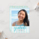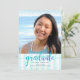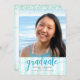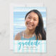 Tenha orgulho, alegria e mostre este marco do seu formando favorito! Enviar este espantoso, moderno, cintilante roteiro de tipografia azul-turquesa contra um fundo azul-turquesa e branco listrado com pontos de turquesa e dourado, convite personalizado para fotografia para um evento a recordar. Personalize o texto personalizado com o nome do seu formando, ano escolar e ano de aula. O texto do convite do local do evento está no verso. Garantido para adicionar diversão na moda à sua ocasião especial! Na frente, digite o nome do seu formando, ano escolar e de aula, adicione a foto dela, e você pode personalizar facilmente este convite de formatura. As informações personalizadas da parte traseira deste cartão. Por favor, me mande mensagens com quaisquer perguntas ou solicitações.