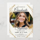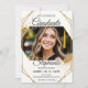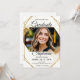 Este convite de aniversário e graduação oferece uma beleza moderna e brilhante com tons de ouro encantadores e padrões geométricos únicos. A foto do retrato do receptor é colocada em uma espumante geométrica, criando um destaque proeminente e atraente. As informações detalhadas sobre eventos são apresentadas claramente, ajudando os convidados a compreender facilmente o conteúdo.