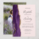 A borda esquerda deste elegante convite de casamento moderno apresenta uma cor d'água roxa, borda agitada, aparada com falso brilho dourado. O texto personalizável combina a escrita manual de cinzas de carvão, fontes em copperplate e itálico em um fundo cor-de-rosa pincelado. Substitua facilmente a imagem de amostra no verso pela sua foto vertical,
