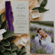 A borda esquerda deste elegante convite de casamento moderno apresenta uma cor d'água roxa, borda agitada, aparada com falso brilho dourado. O texto personalizável combina a escrita manual de cinzas de carvão, as fontes em copperplate e itálico em um fundo de marfim. Substitua facilmente a imagem de amostra no verso pela sua foto vertical,