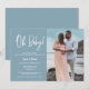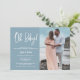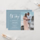 Um convite simples e moderno, azul, chá de fraldas com uma foto personalizada das fotos de maternidade do casal. A escrita "Oh Baby" acrescenta um toque lúdico, fazer-o perfeito para celebrar esta ocasião especial. Personalize com os nomes do casal, os detalhes do chá, o rsvp e as informações do registro. A foto da maternidade cria um convite memorável para seus convidados.