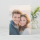 Este convite de casamento apresenta uma fotografia calorosa e íntima de dois indivíduos compartilhando um momento alegre, capturando a essência do amor e da felicidade. O design exibe uma paleta de cores suaves com tons terrosos, complementada por um suéter azul texturizado e um top leve de malha, criando um contraste harmonioso contra um cenário natural desfocado. O estilo espontâneo enfatiza a emoção genuína, com cabelos desalinhados adicionando um senso de espontaneidade e movimento. Perfeito para casais que buscam um toque autêntico e sincero, este convite transmite um clima sonhador e sereno, ideal para celebrar um momento especial da vida.