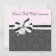 Convite Foto negra rosa Damask Heart Cross First Communtio