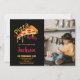 Convite Foto Orange Black Red Pizza Birthday Invances