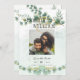Apresentando nosso belo casamento fotográfico Salve as datas, com uma impressionante design de folha de eucalipto com sotaque dourado. Estas salvas são perfeitas para casais planejando um casamento botânico e de temas verdes. O design é elegante, eterno e perfeito para um jardim, ao ar livre ou casamento no quintal. A página salvar as datas contém uma foto do casal, fazer-a pessoal e memorável para seus convidados. Além disso, você também pode adicionar um código exclusivo de verificação de QR para um toque de modernidade e conveniência. Estas datas salvas fazem parte de uma coleção maior que também inclui convites, cartões RSVP e até mesmo um sinal de boas-vindas ao casamento para completar a aparência do seu dia especial. A aquarela das folhas de eucalipto e os sotaques dourados tornam esta coleção perfeita para todas as estações, acrescentando um toque de natureza e elegância ao seu dia especial. O design é versátil e pode complementar casamentos clássicos e de inspiração boêmica. Comece sua jornada de casamento com esse belo e inspirado em botânica Casamento Foto Salve as Datas e carregar o tema através do seu casamento com a coleção correspondente.