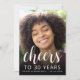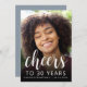 A frente deste convite para aniversário de 30 anos apresenta a foto do convidado de honra com uma cobertura de texto branca. A palavra "torcida" aparece num elegante roteiro de caligrafia branca, seguido de "até 30 anos" e o nome de convidado de honra e aniversário em sans serif font. Uma tela escura ajuda a tornar o texto pop. Personalize o lado inverso com o nome e os detalhes da festa em branco em um fundo azul empoeirado. Uma forma excelente de celebrar alguém que está fazendo trinta anos!