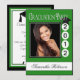 O boné de início está na data de conclusão personalizada. Carregue seu segundo grau ou foto da faculdade e personalize seu nome na frente. Preencha os detalhes da festa lá atrás. Mostrado em verde, preto e branco nas expressões de papel.