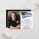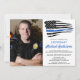 Convites de aposentadoria da polícia de linha azul fina. Celebre anos de serviço dedicado e convide amigos e familiares para a sua festa de aposentadoria na polícia com este Convite para aposentadoria da Polícia de Sinalizador Azul Thin. DESIGN americano na Polícia de Sinalizador, cores modernas, preto branco e design azul. Este convite para aposentadoria de policial também é perfeito para convites para formatura na academia de polícia, mudança de local na personalização. Veja nossa coleção para combinar presentes de aposentadoria da polícia, favoritos para festas de aposentadoria da polícia e suprimentos. COPYRIGHT © 2021 Judy Burrows, Black Dog Art - Todos Os Direitos Reservados. Foto personalizada da polícia - Fino Convite para Reforma de Sinalizador de Linha Azul
