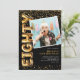 Convite Foto Preto e Dourado de Aniversário de 80 Anos