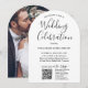 Convide familiares e amigos para uma celebração de casamento simples e elegante com convites arqueados com QR code únicos e elegantes. A foto e todo o texto neste modelo são simples de personalizar para incluir quaisquer detalhes que você escolher. O design moderno minimalista preto e branco apresenta uma foto do casal de noivos ou recém-casados, caligrafia manuscrita trendy e tipografia estilo máquina de escrever chic. Ao escanear o QR code com seus telefones, os convidados são enviados diretamente para o site do casamento para responder ao convite. Um processo de RSVP online reduz a chance de que cartões sejam perdidos no correio. Também é mais versátil, pois você pode solicitar informações mais detalhadas, como escolhas de refeições, alergias alimentares e pedidos de músicas. Todas as informações de resposta podem ser personalizadas ou excluídas. Este convite é uma maneira elegante de pedir aos convidados do casamento que respondam gentilmente à celebração do seu dia especial que se aproxima. Parabéns à noiva e ao noivo!