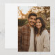 Este convite de casamento apresenta uma fotografia calorosa e íntima de dois indivíduos que estão próximos um do outro, sorrindo contra um fundo suavemente desfocado de folhagens com iluminação de pôr do sol dourada. A paleta de cores inclui tons aconchegantes como amarelos dourados, laranjas suaves e verdes suaves, criando uma atmosfera convidativa. O estilo é franco e informal, enfatizando a emoção genuína e a conexão entre os sujeitos. Perfeito para casais que desejam capturar a essência sincera do seu relacionamento, este design transmite alegria e afeto em um ambiente sereno e natural.