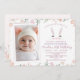 Foto Quente Flores Selvagens Alguns primeiros aniversarios de coelhinho Convite Sweet alguns coelhinhos com o primeiro convite de aniversário apresentando um rosto coelho, pontos de ouro falsos e adoráveis arranjos de flor silvestre e de cor quente. A foto aparece em um quadro branco duplo.