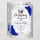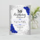 Convite Foto Real Azul Silver Elegante 50º Aniversário