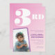 Convite Foto Retroativa de aniversário de 3 anos de Pink