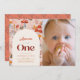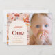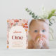 O convite fotográfico de 1rua/primeiro aniversário desta menina bonita apresenta um fundo cor-de-rosa pincelado com cogumelos, flores silvestres e folhas de outono/outono. O verso apresenta um fundo cor-de-rosa com padrões florais. Personalize para suas necessidades. Você pode encontrar mais produtos correspondentes na minha loja.