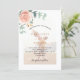 Decorados com ouro-rosa e folhas de eucalipto cor-de-rosa-esbranquiçada, flores de rosa e cor-de-rosa-esbranquiçada, galhos, verde e borras de ouro. Personalize e adicione sua foto, nomes e detalhes do casamento. Sobreposição de fotos brancas. Voltar: adicione o URL do seu site de casamento ao código QR para obter detalhes e/ou RSVP.