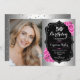Convite Foto rosa preta prateada elegante 50º aniversário