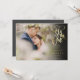 Esta elegante fotografia chic salve a data card apresenta a sua fotografia especial e um guião decorativo em ouro para guardar a data acima dos seus nomes, data e local. Você pode personalizar a cor do plano de fundo para se adequar ou adicionar informações recentes adicionais no inverso. Projetado por Thisnotme©