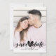 Este cartão moderno e elegante de salvar data com foto e roteiro apresenta seu amor e um coração de salvar data acima dos seus nomes, data e local. O verso apresenta confetes de corações de amor espalhados. Você pode personalizar o fundo para a sua cor favorita. Criado por Thisisnotme©