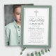 Moderno Elegante Verde e Silver Primeiro Convite à Comunhão com Cruz. Foto de volta.