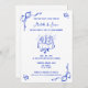 Simples, azul, branco, Desenhou Contemporâneo Convite Retroativo Francês com um quadro de arco, um trabalho de arte de tendência caprichosa para o seu casamento francês por Savanamm Adicione sua foto no verso do convite