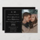 Compartilhe sua história de amor com elegância moderna com este minimalista temido Foto Simples Preta e Convite para Casamento Monograma com a foto do seu casal favorito e um monograma personalizado. O layout limpo combina elegância do eterno com encanto contemporâneo, mostrando suas iniciais em um roteiro elegante, aliado à tipografia moderna. Projetado para casais que apreciam simplicidade e sofisticação, esse convite combina uma foto pessoal com elementos refinados de design para criar uma primeira impressão memorável. Perfeito para temas de casamento monográficos e coordenação perfeita com suites modernos de papelaria de casamento.
