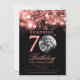 Um convite elegante para uma festa de "70º Aniversário" com foto personalizada, tipografia moderna e um fundo de luzes de corda.