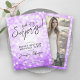 Elegante e mínimo Doce Dezesseis Convite de aniversário de Surpresa com luzes de modelo roxo, espaço reservado para fotos personalizado e script de tipografia moderna.