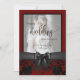 Foto tradicional de aniversário de casamento de 25 anos feliz com laço preto, padrão floral azul personalizado cartão de aniversário de casamento com script. Confira a elegante coleção de decoração de casamento e lar.